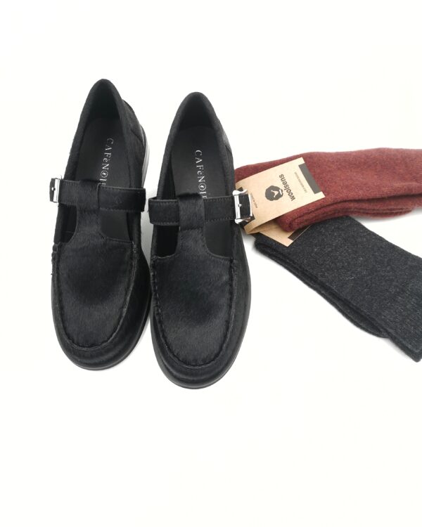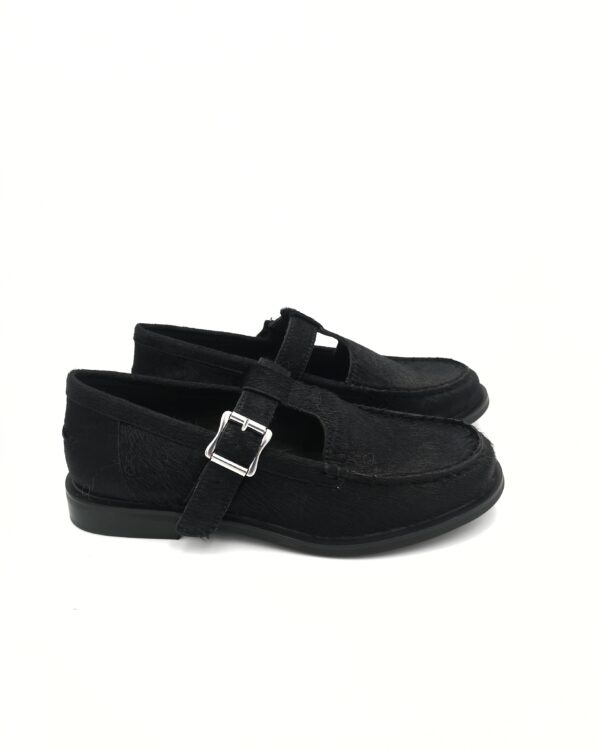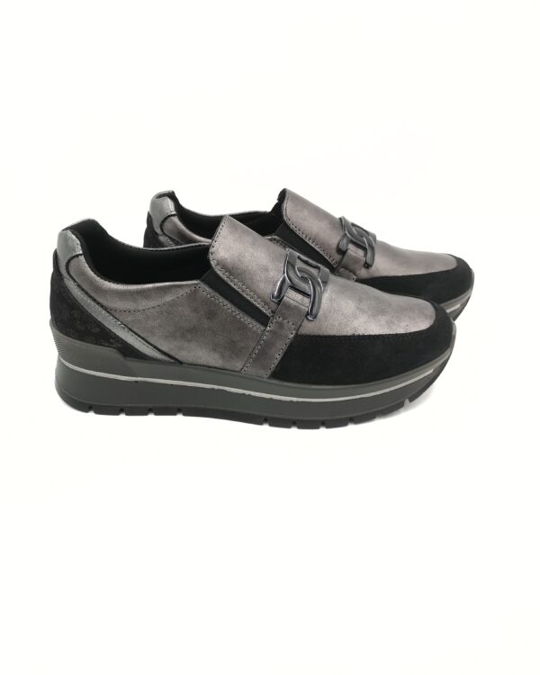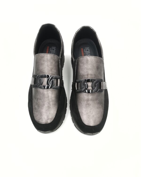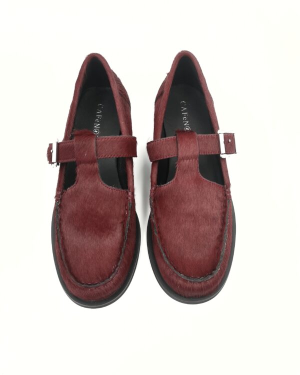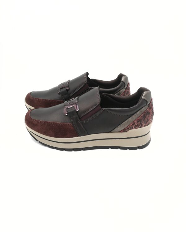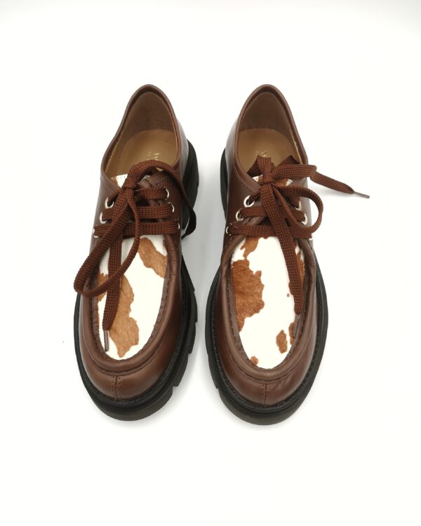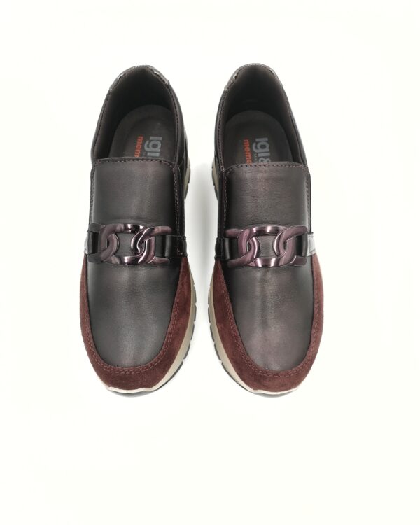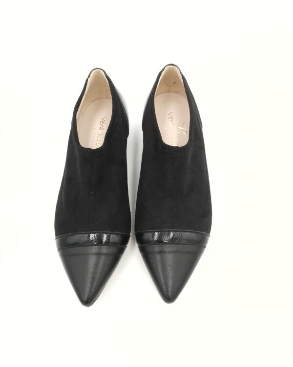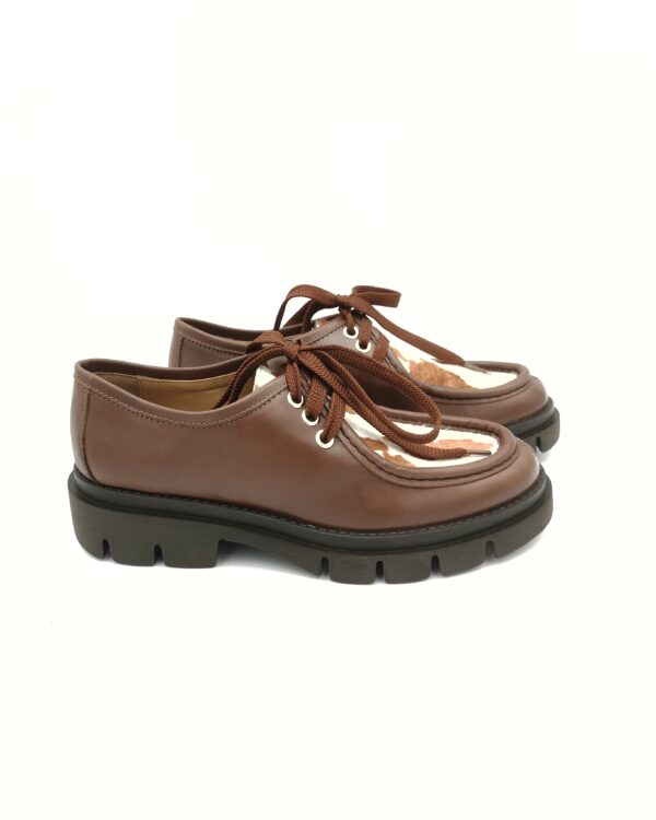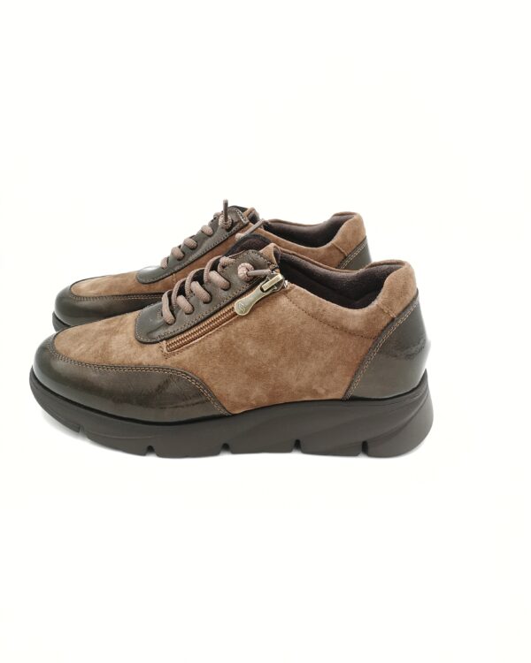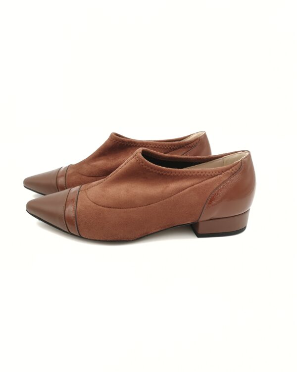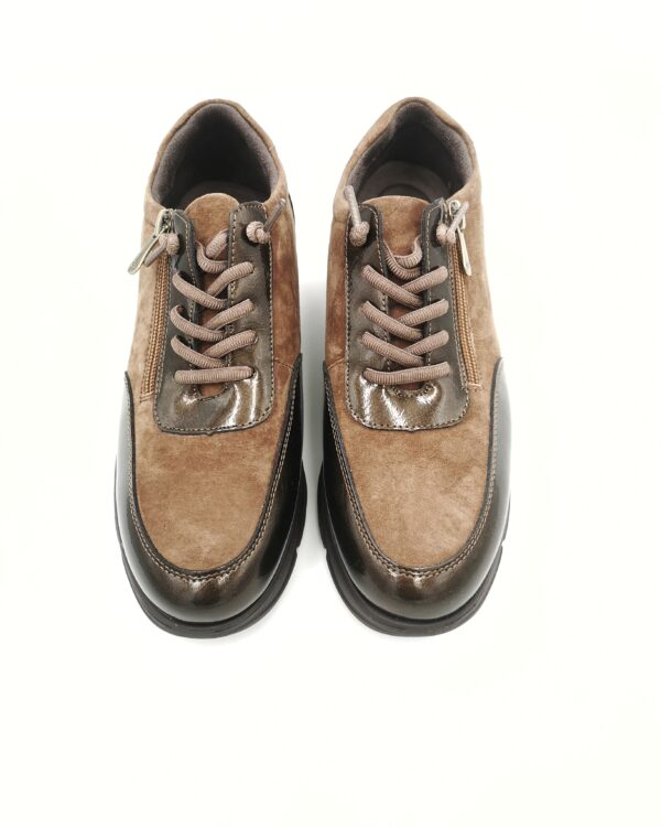 Zapato combinado charol y ante marron cordon elastico y cremallera