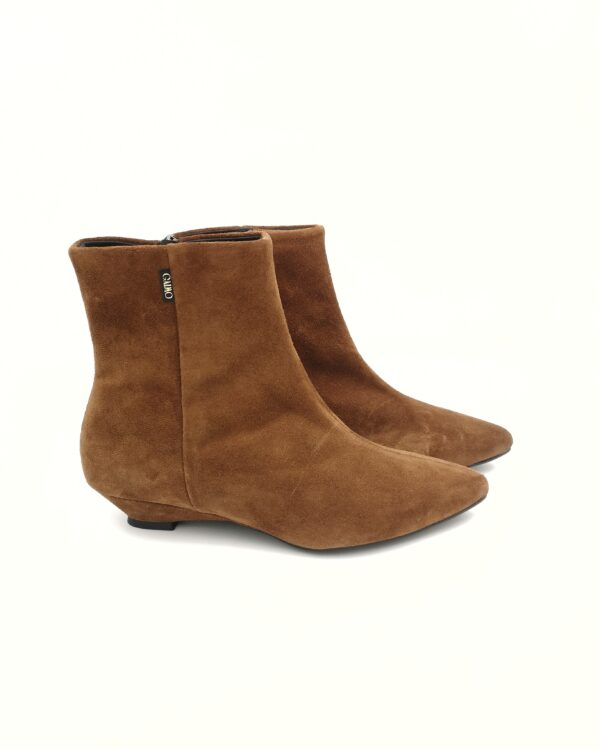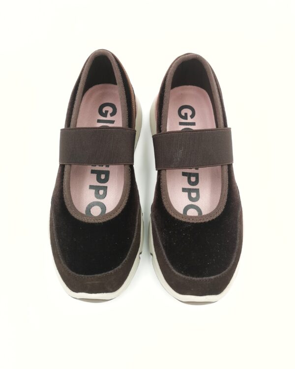 Zapato combinado charol y ante marron cordon elastico y cremallera