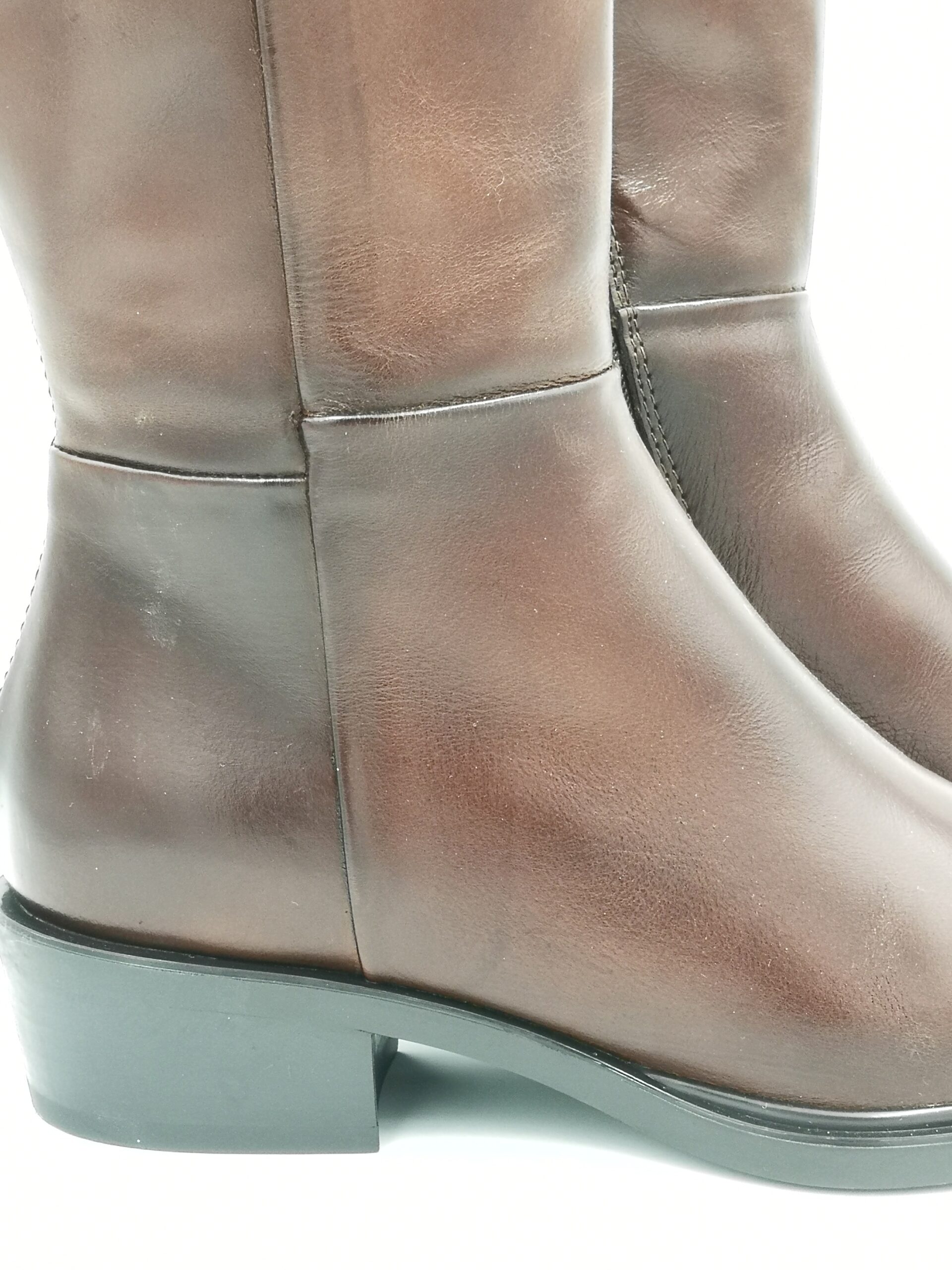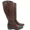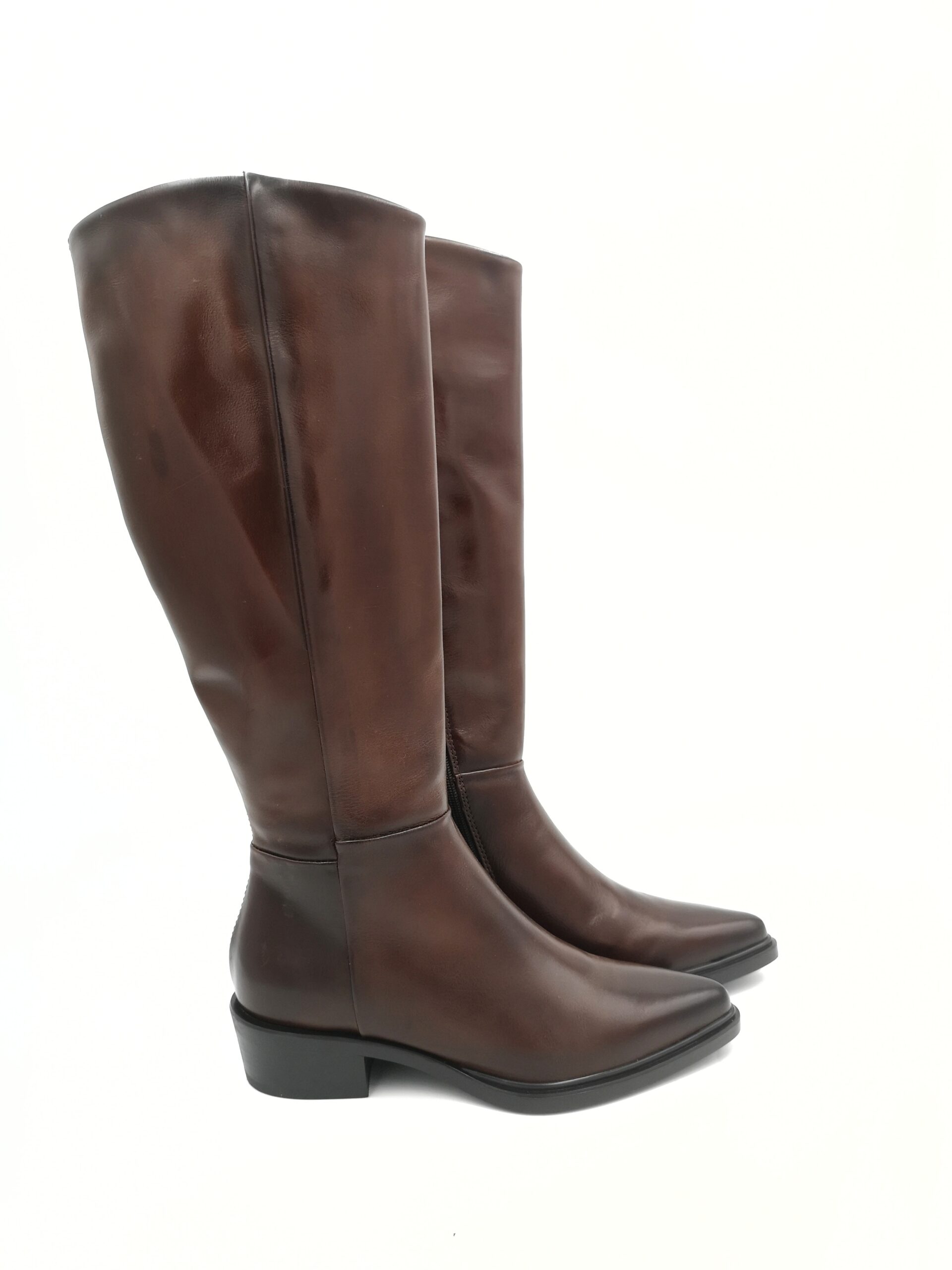Bota alta de piel marron cepillada con cremallera lateral. Tacon de 3 cms.