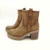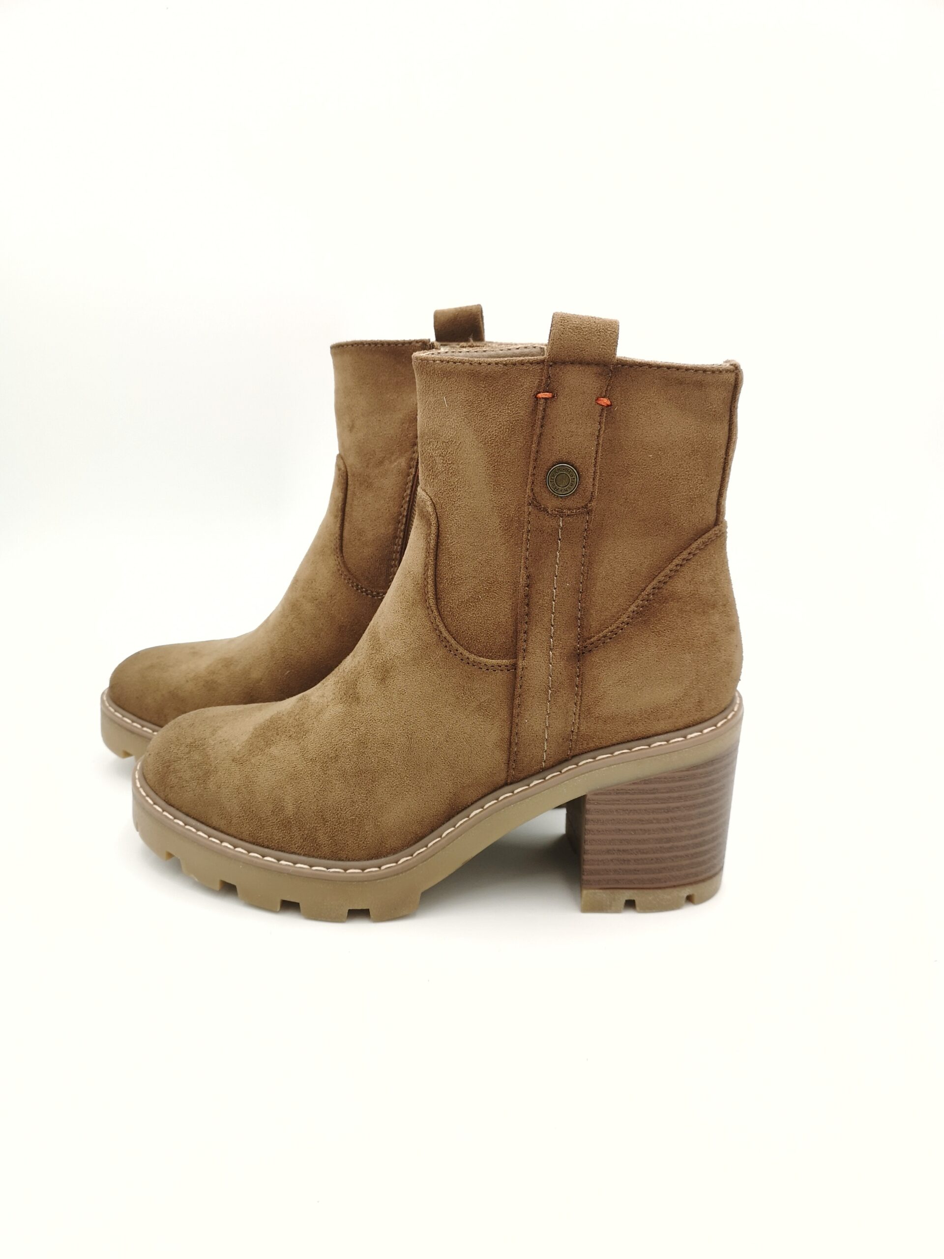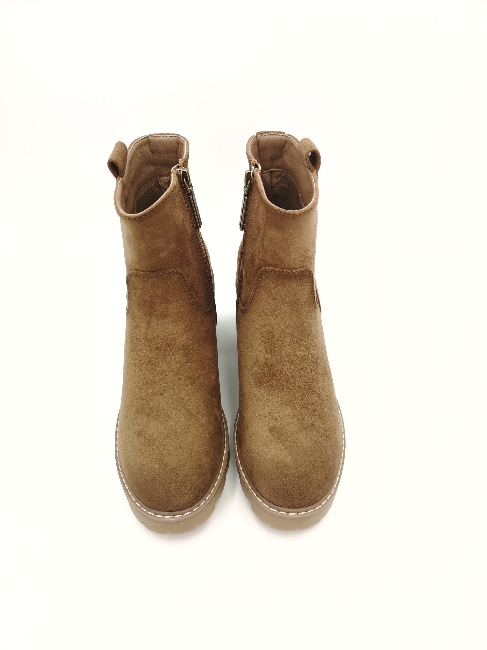 Botin antelina camel con cremallera lateral. Tacon grueso de 6 cms.