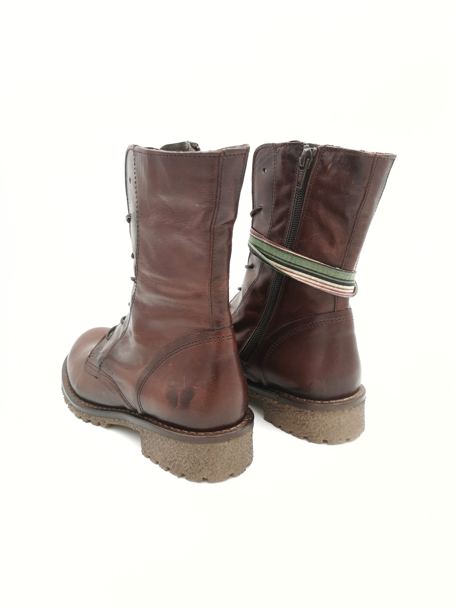 Botin de piel marron con cordonera y cremallera lateral. Piso caramelo. Muy bonita!