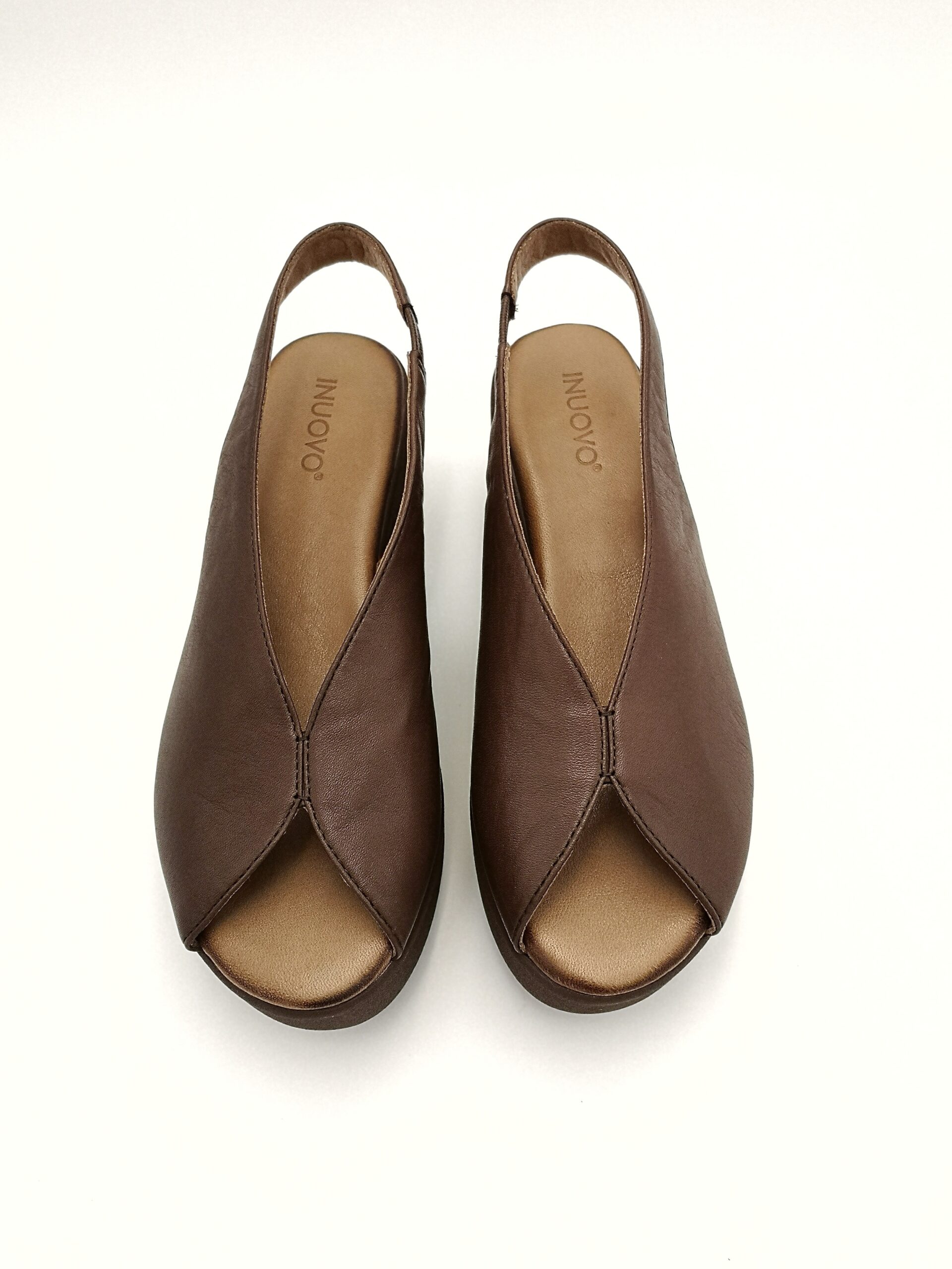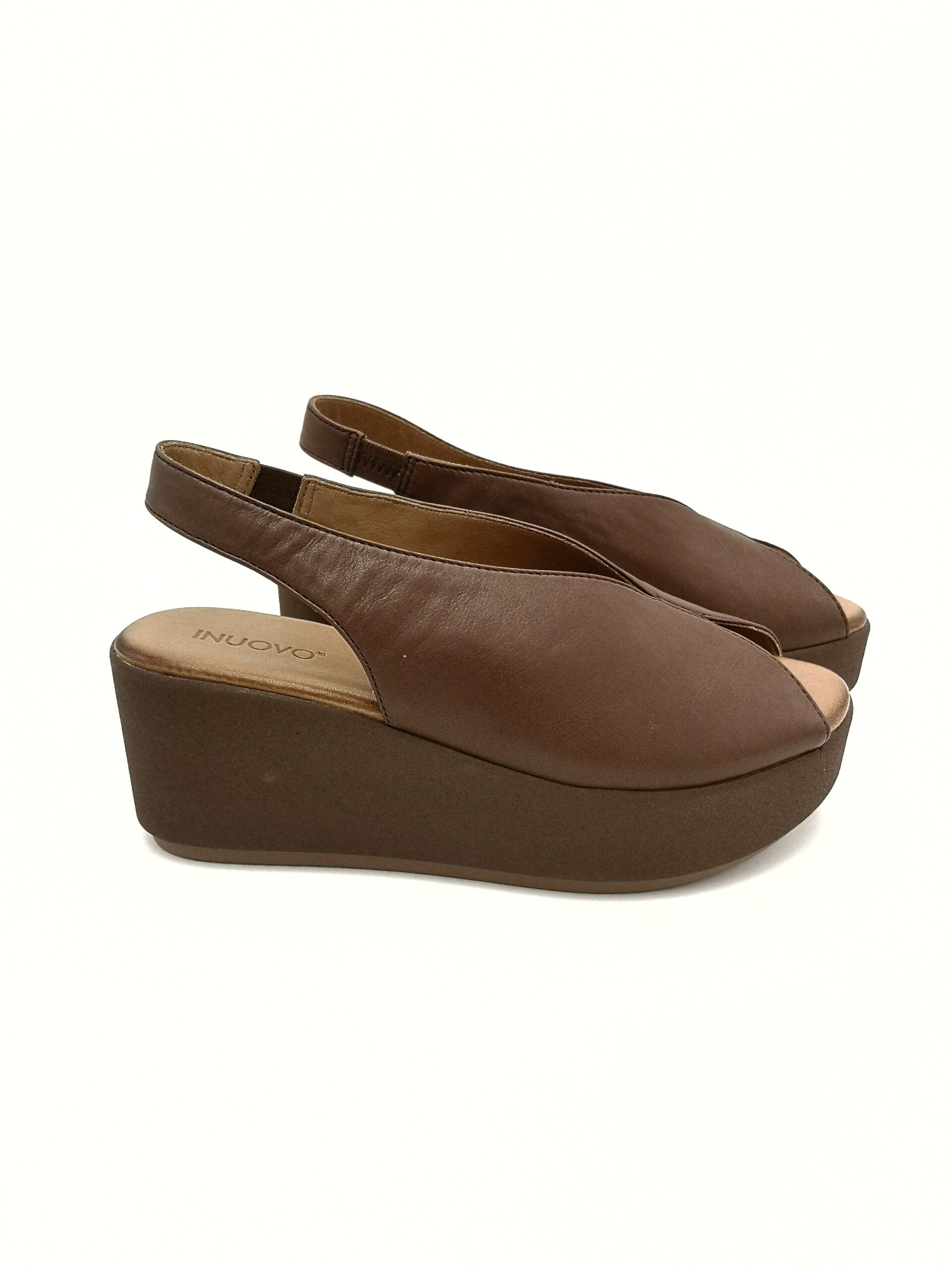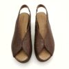 Sandalia de cuña para mujer en piel color marrón, un básico imprescindible para el verano por su estilo sencillo, elegante y fácil de combinar. Su diseño minimalista con pala cerrada aporta un toque sofisticado, ideal tanto para looks casuales como más arreglados.