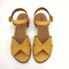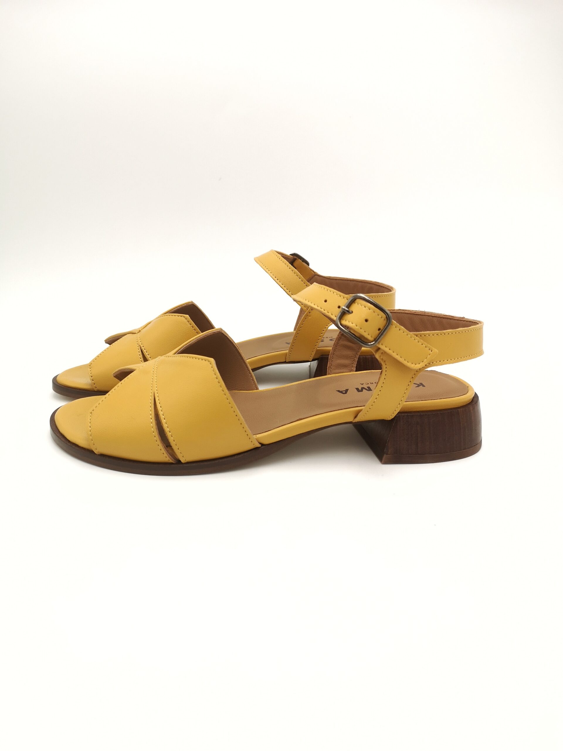 Sandalia Mujer Piel Amarilla con Hebilla – Tacón Bajo Cómoda y Elegante