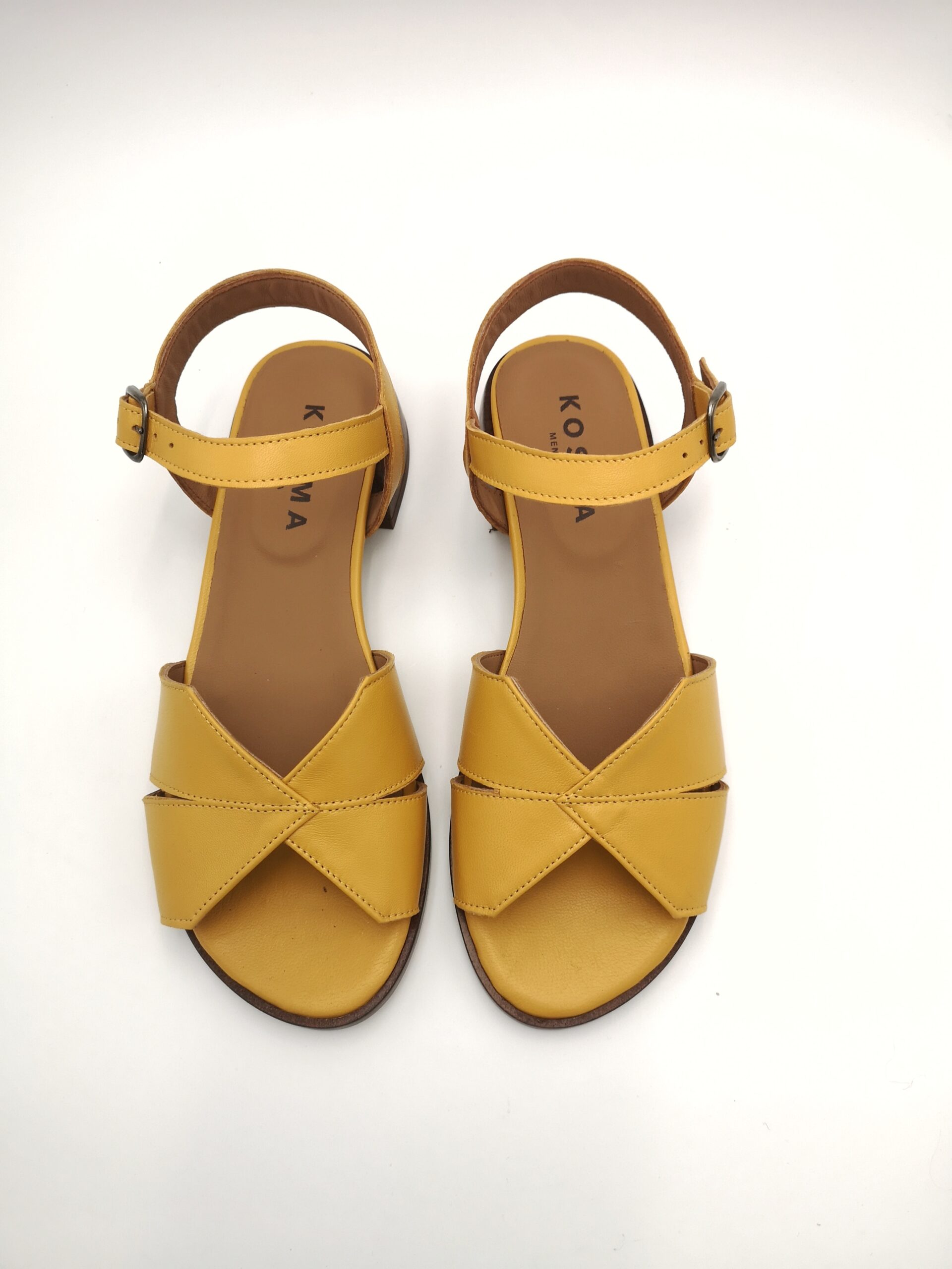 Sandalia fabricada en piel de muy buena calidad en elegante color mostaza. Cuenta con cierre de hebilla que permite un ajuste seguro y personalizado. Diseño cómodo y versátil, ideal para el día a día, combinando estilo y durabilidad en cada paso.