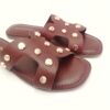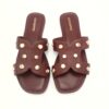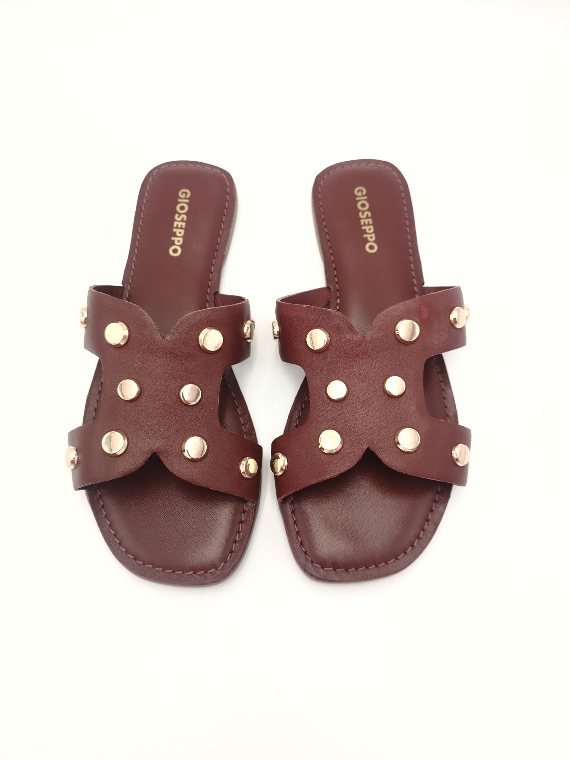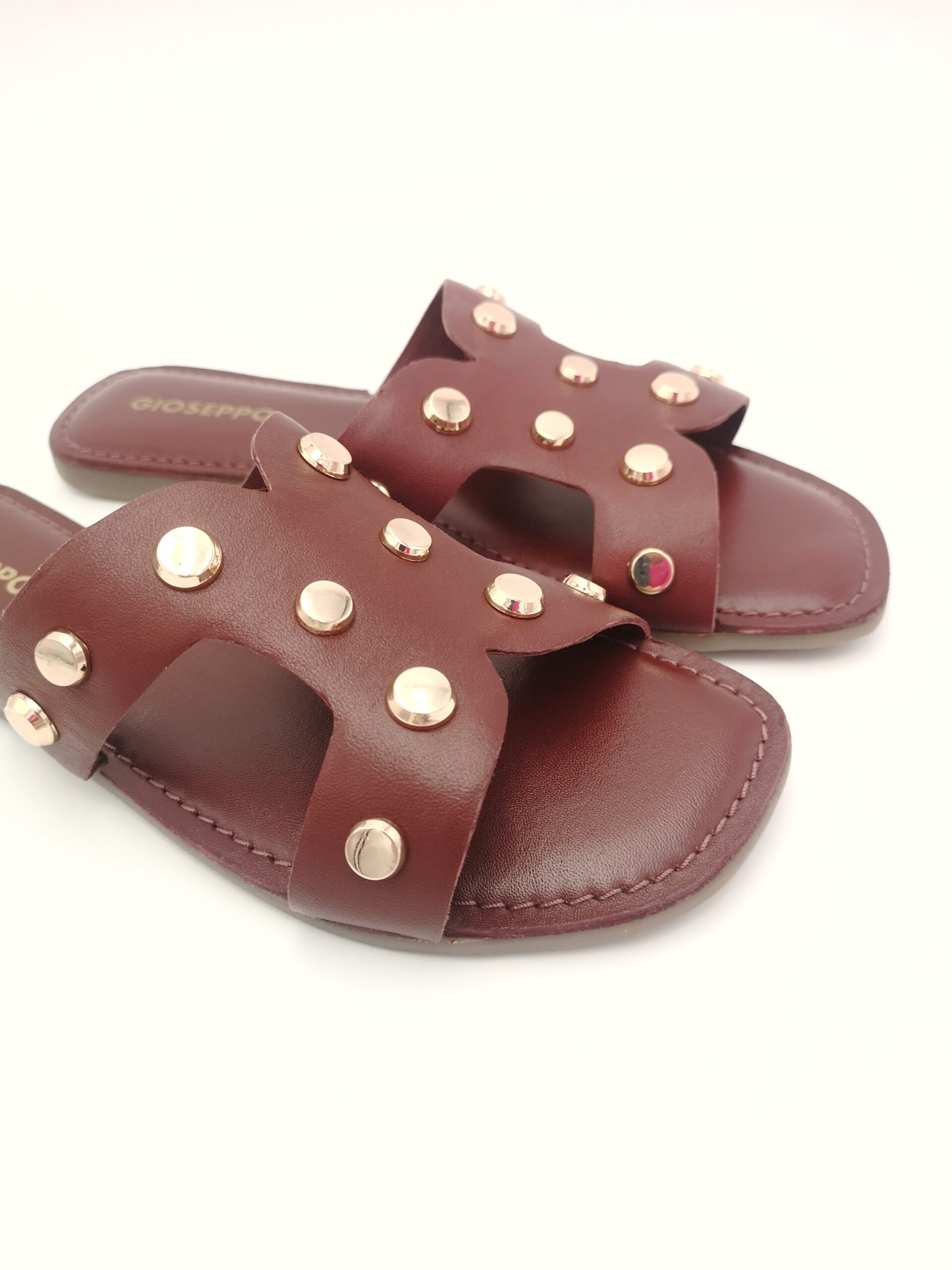 Sandalias planas de piel con detalle de tachas. Planta acolchada.