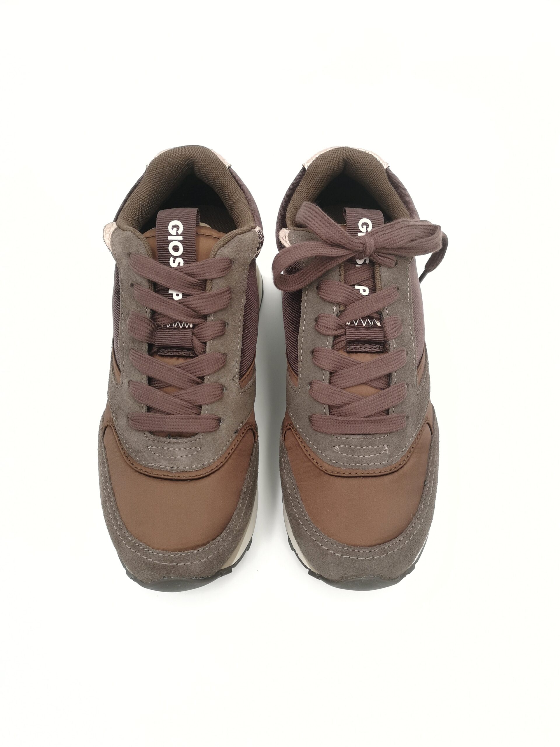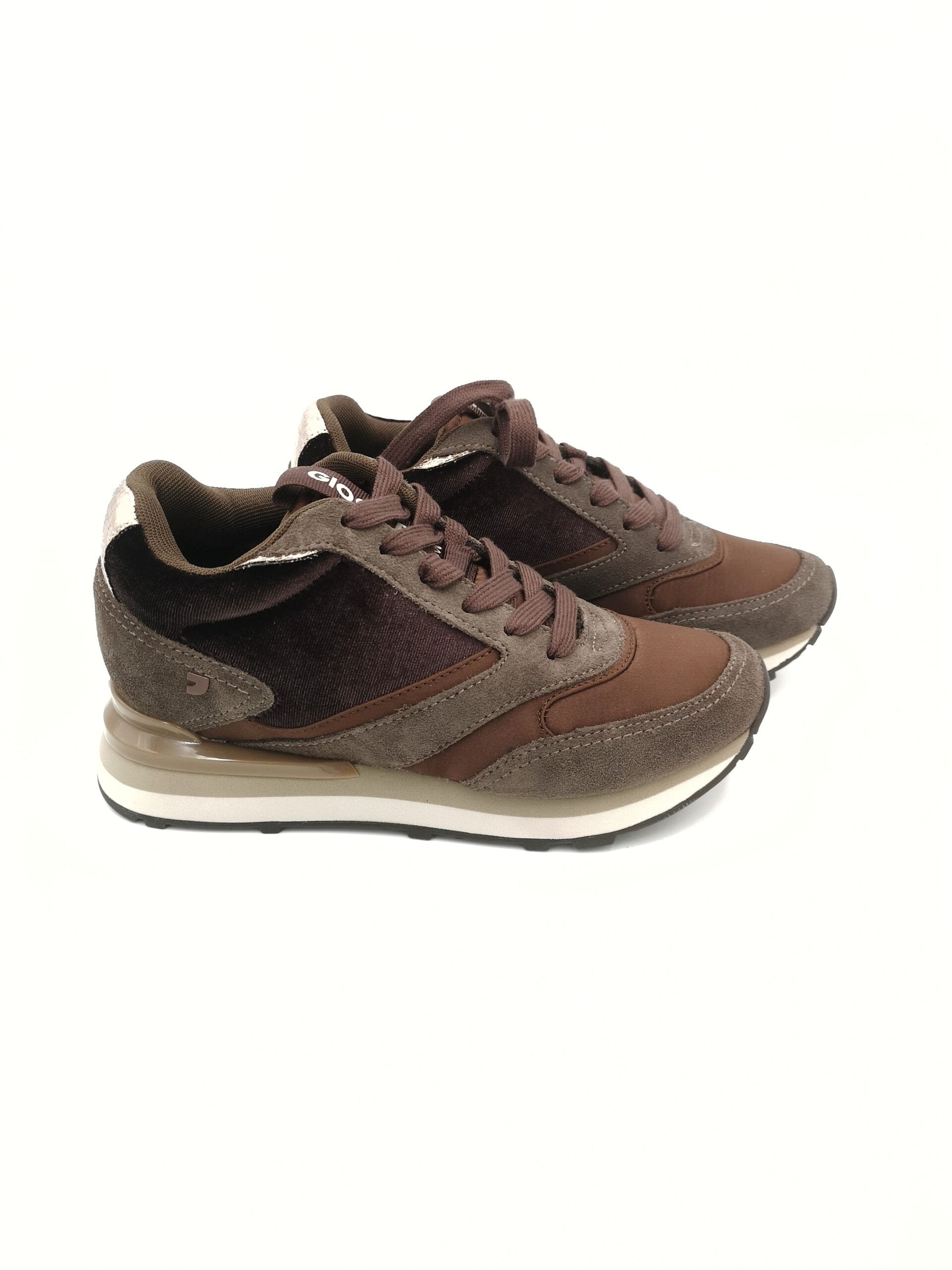 Deportivo de cordon combinado ante y terciopelo marron con cuña interna.