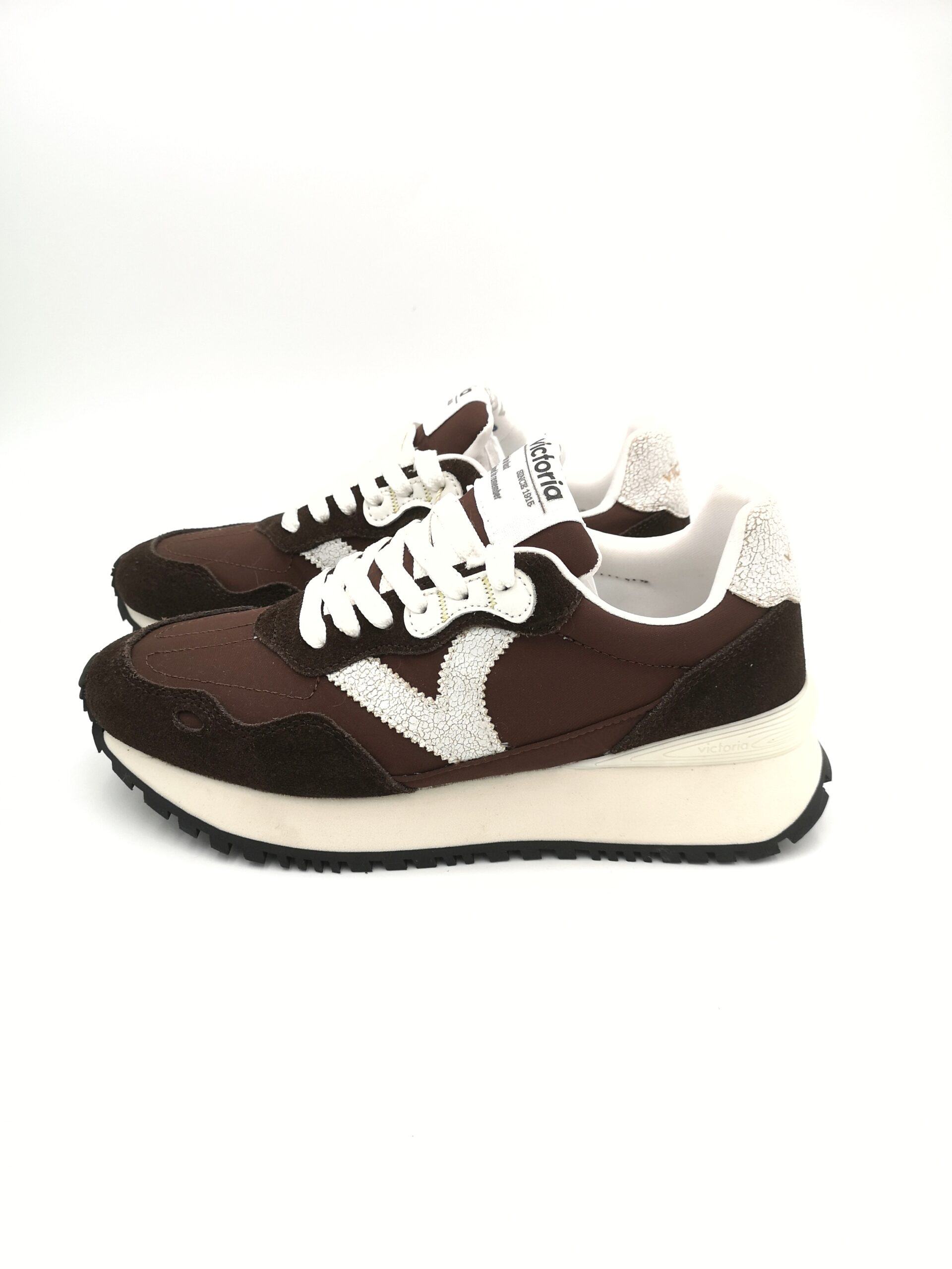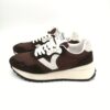 Zapatilla de cordon combinada ante y nylon en color marron. Piso con volumen.