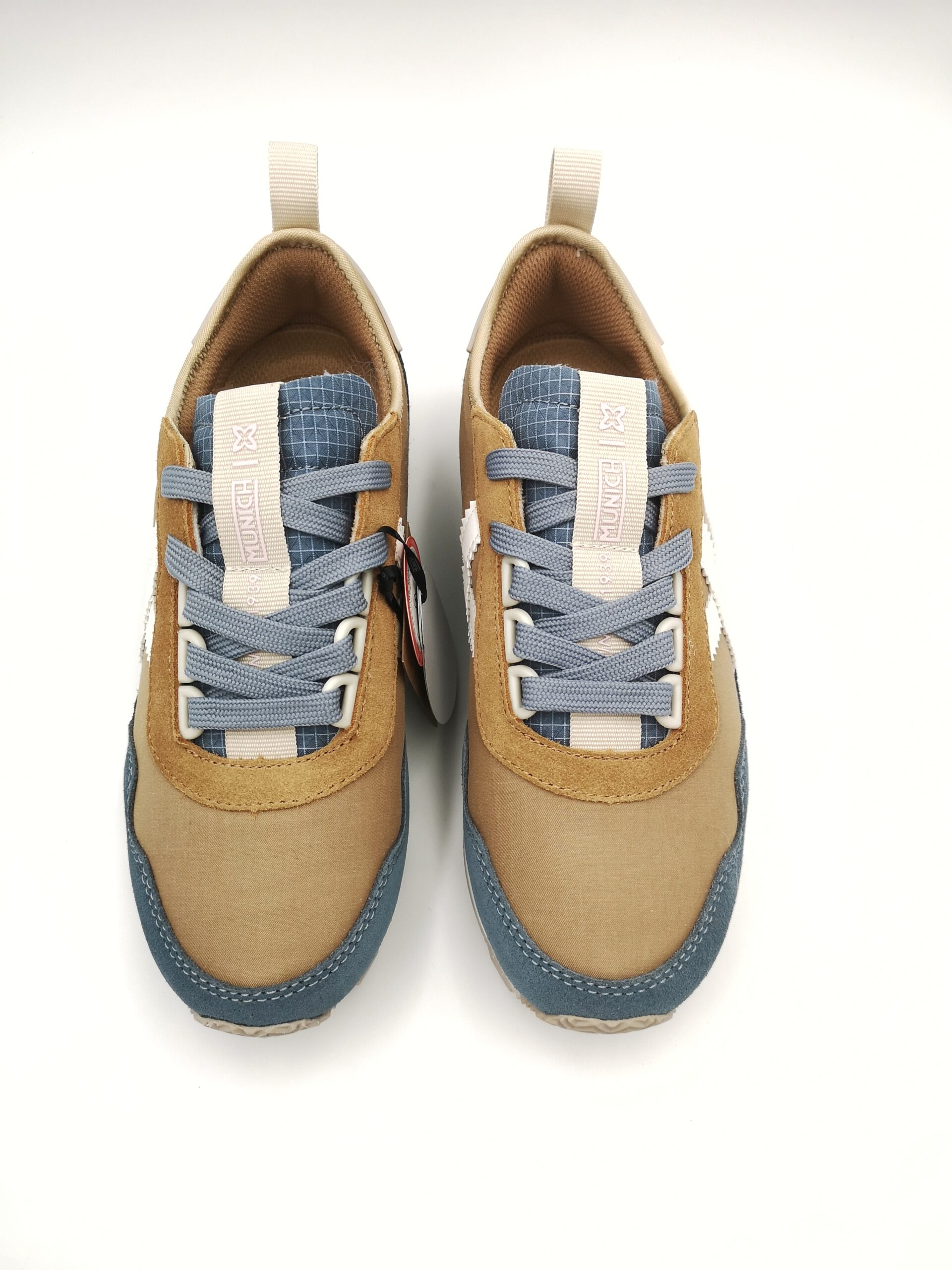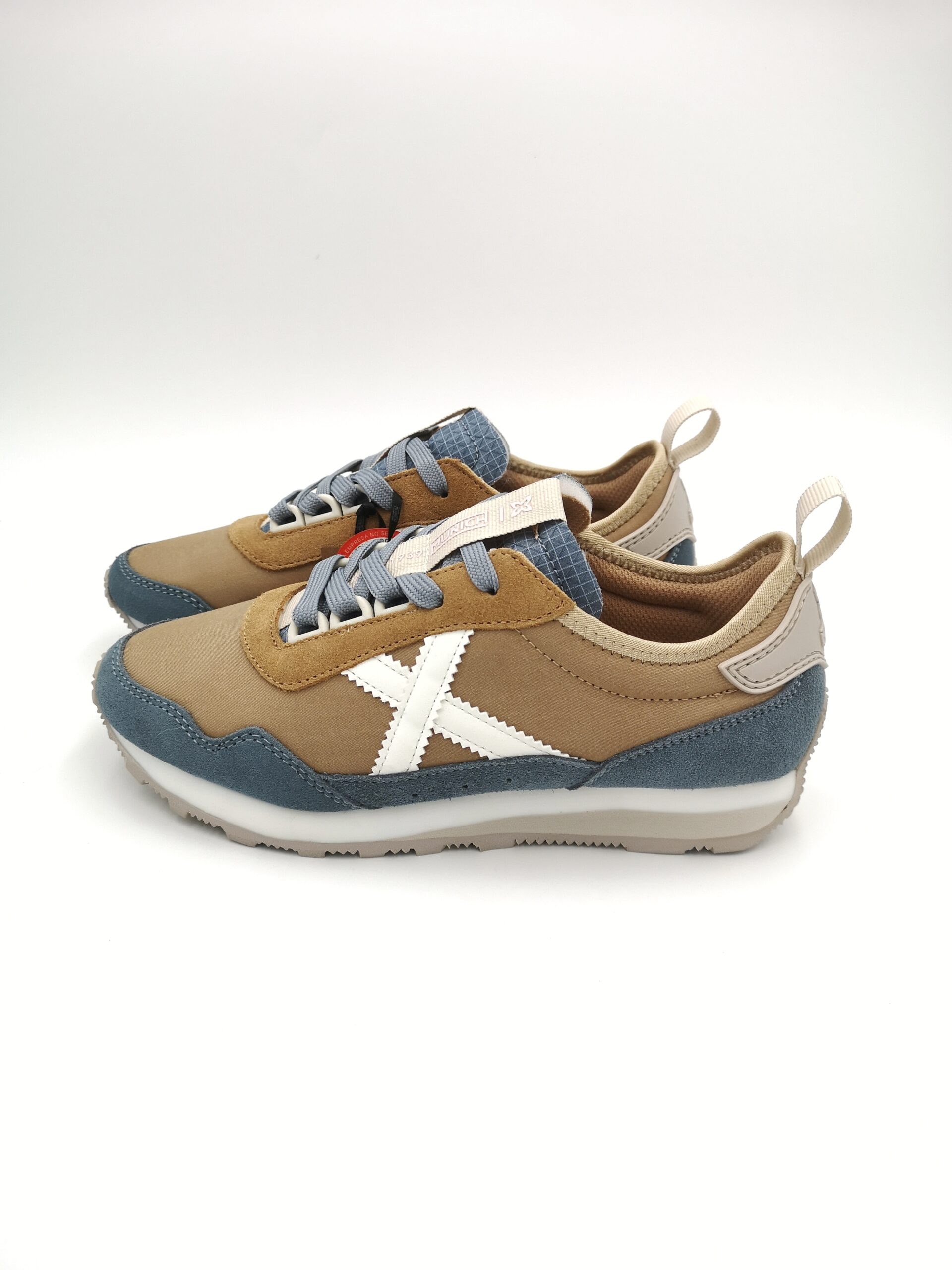 Zapatilla de cordon combinada ante y nylon azul y camel. Un modelo clasico de MUNICH.