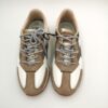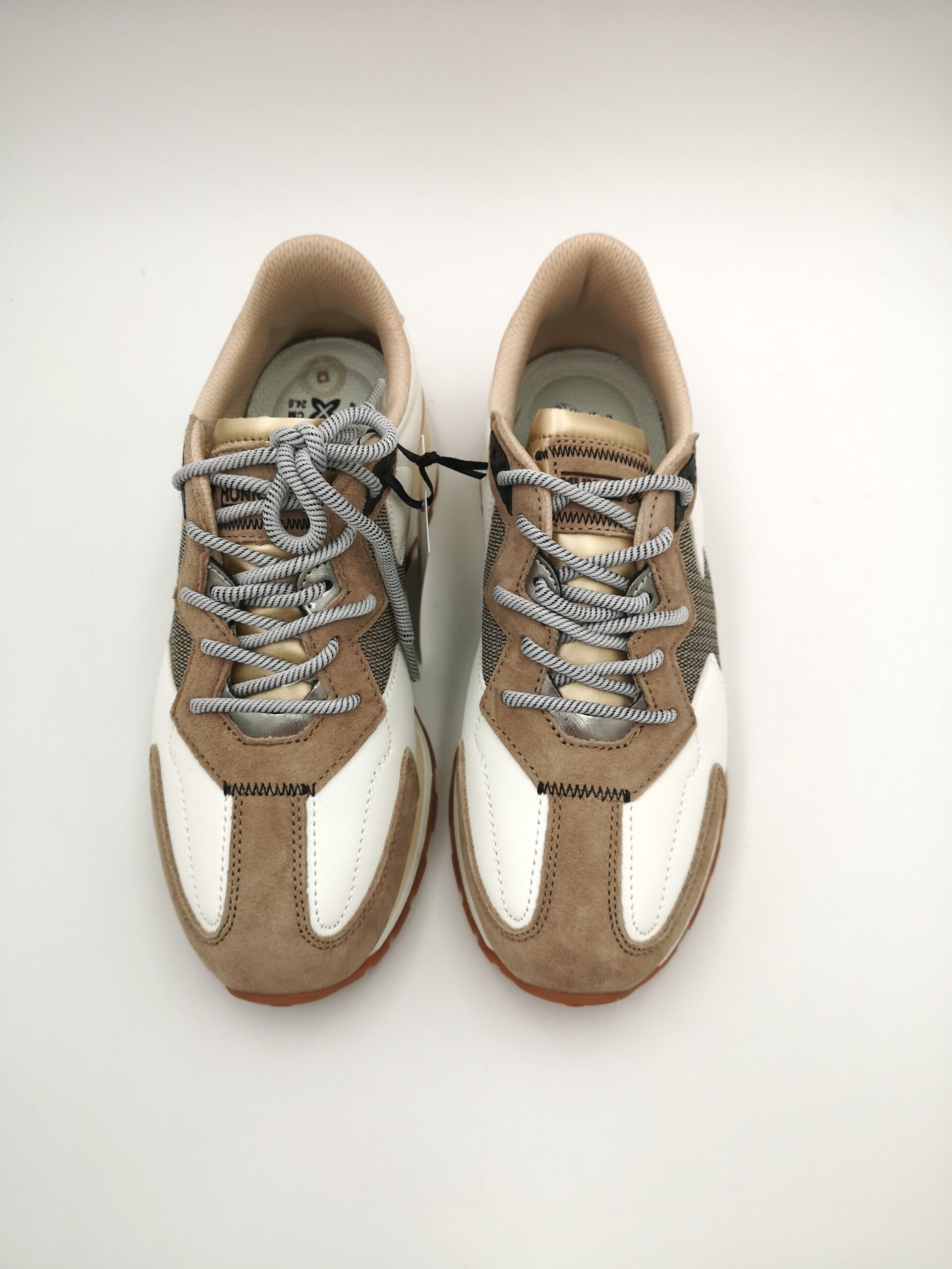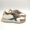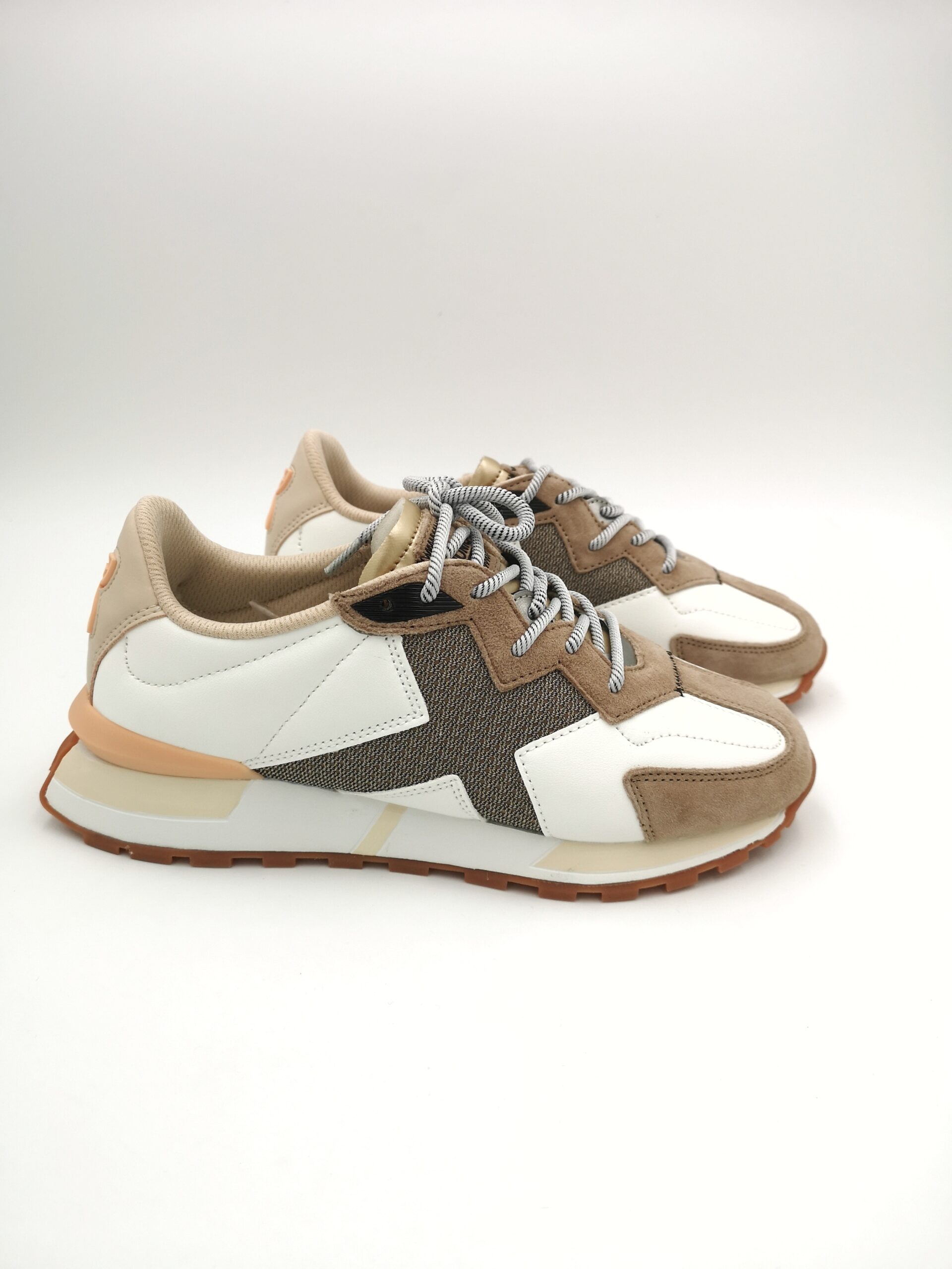Zapatilla de cordon combinada piel blanca y ante beige.