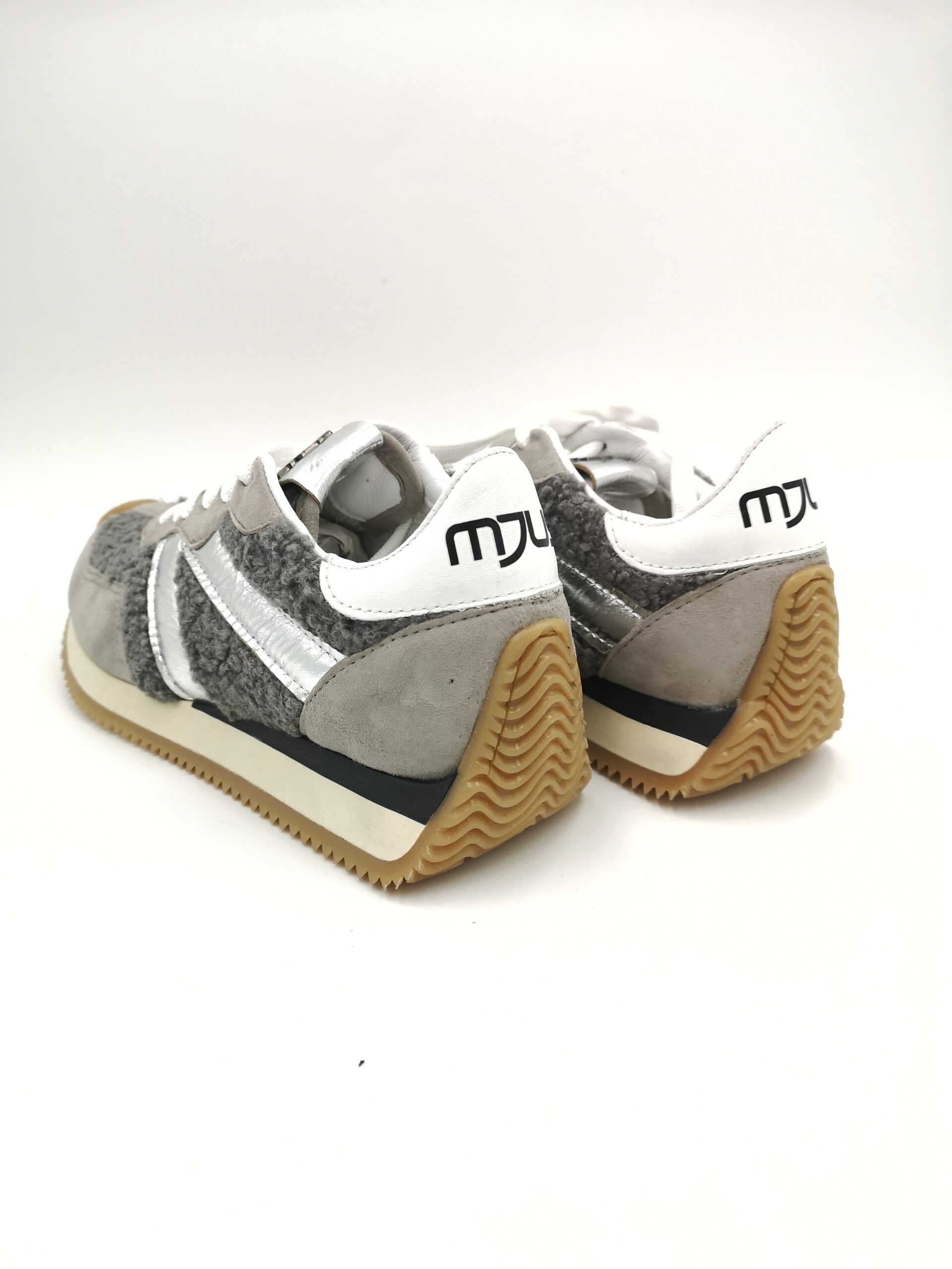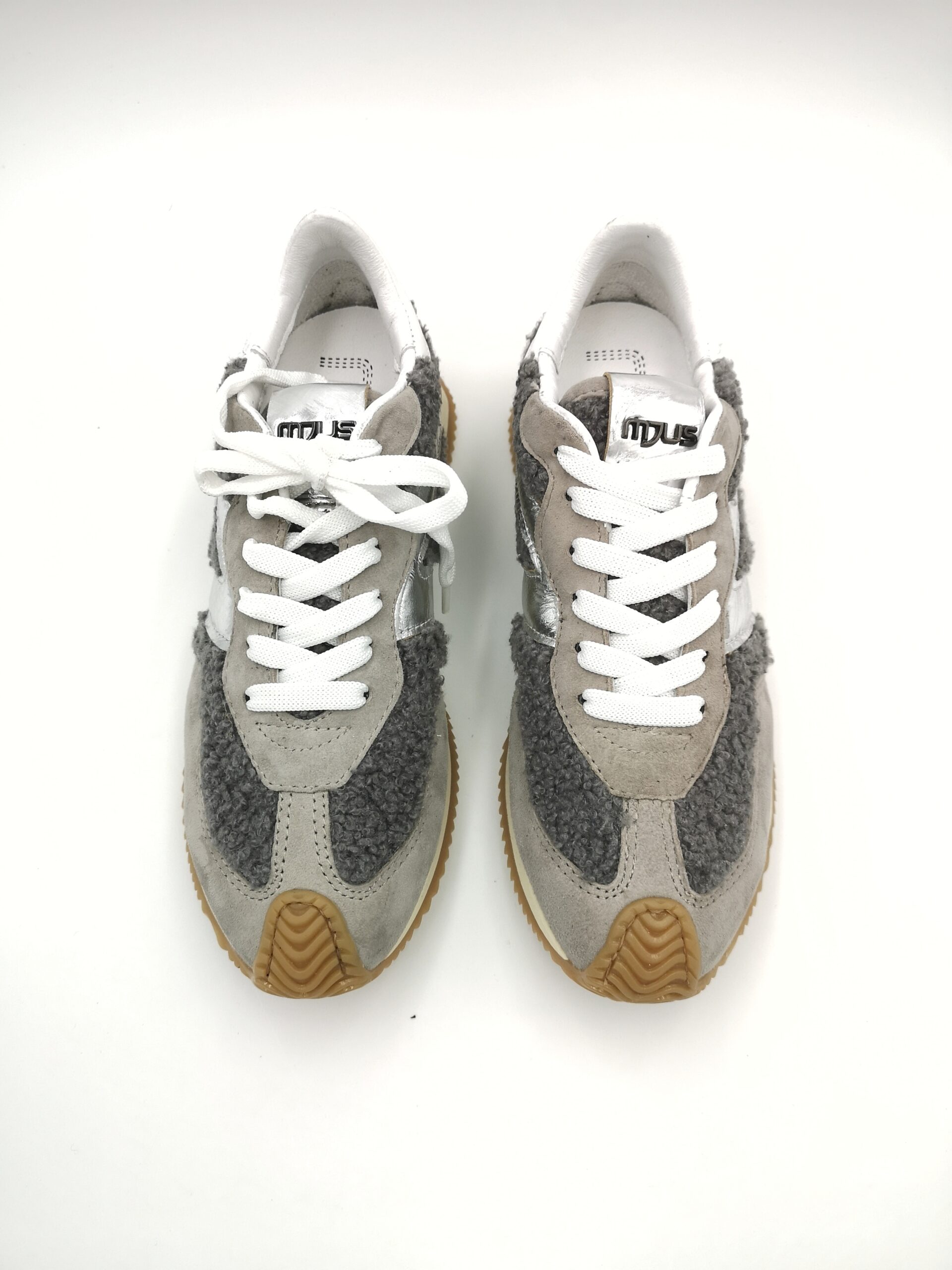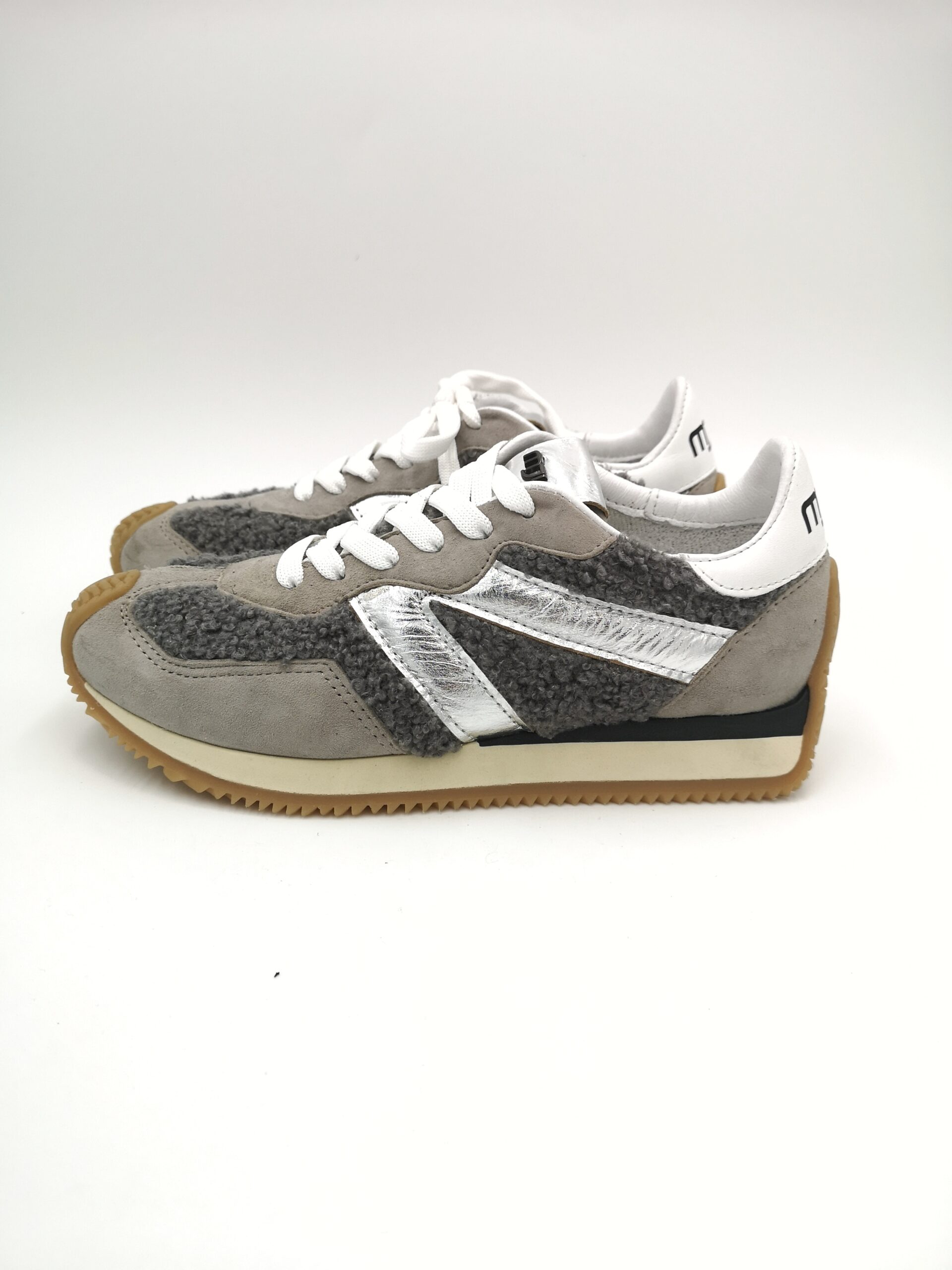 Zapatilla de cordon combinada en ante gris con piel plata y borreguito gris. Bonita y muy comoda!