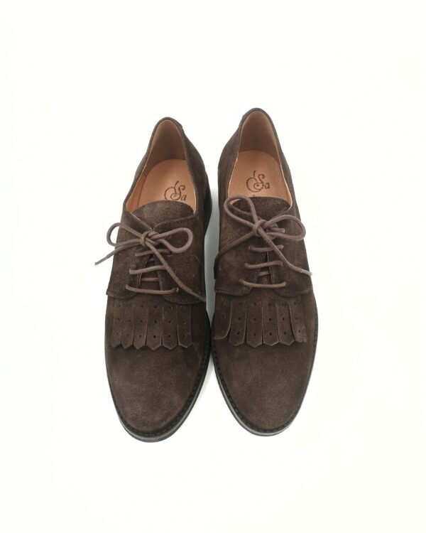 Zapato de ante marron cordon y fleco
