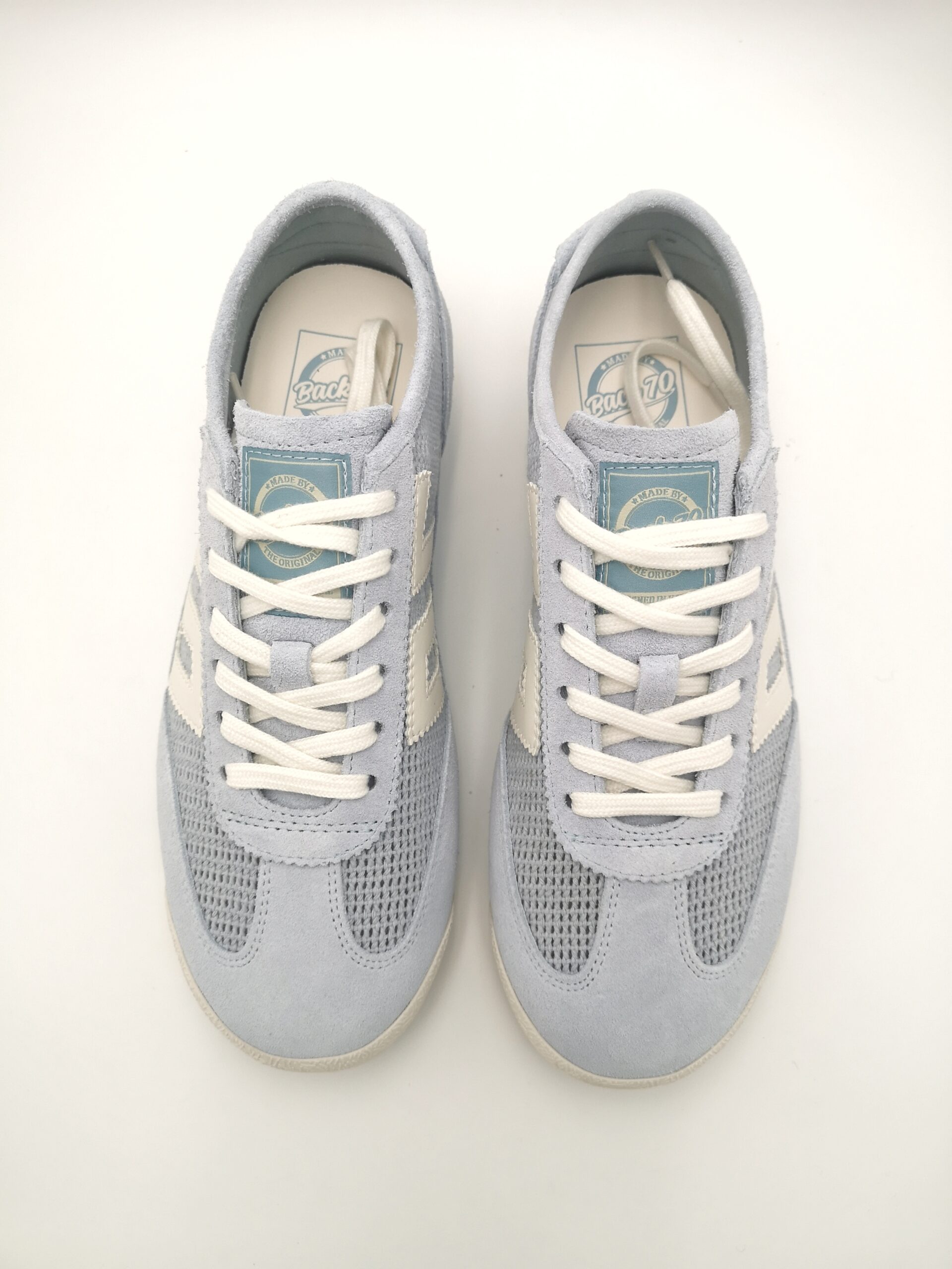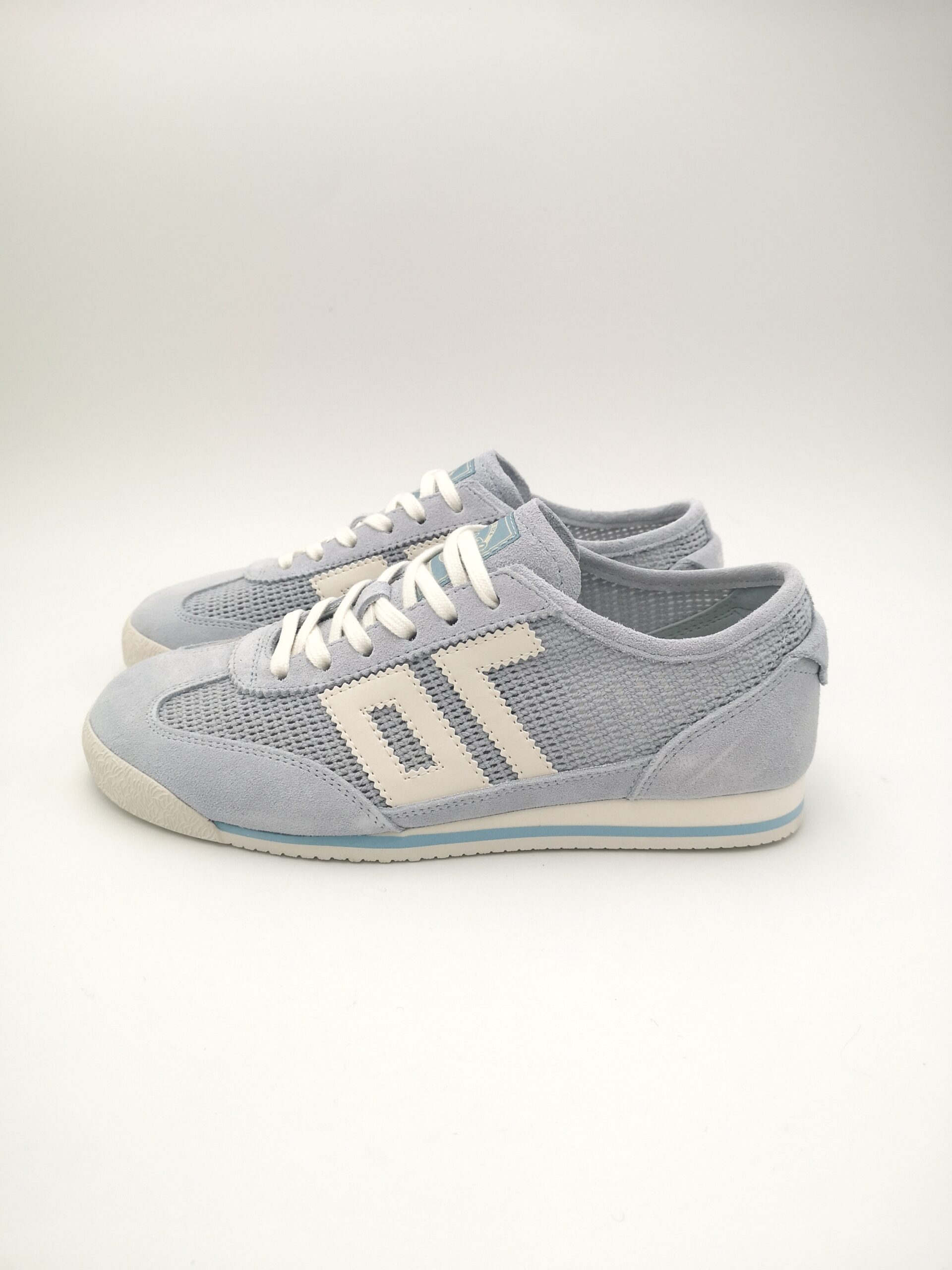Zapatilla de cordón combinada en ante y rejilla color azul cielo. Ligera, fresca y cómoda.