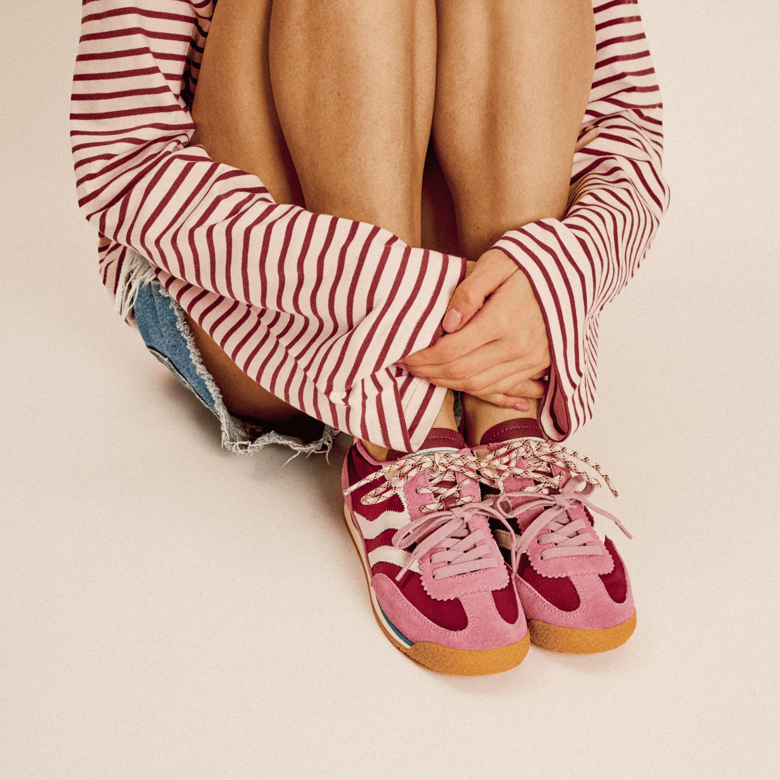 Las MRP Star Pure Burgundy son la combinación perfecta entre inspiración retro y diseño contemporáneo. Una sneaker femenina con personalidad propia que destaca por sus líneas fluidas y su cuidada combinación de materiales premium.