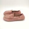 Mocasín de mujer estilo barefoot en nobuck color rosa, ideal para quienes buscan comodidad sin renunciar a un toque femenino y coqueto. Su diseño suave y flexible se adapta perfectamente al pie, favoreciendo una pisada natural.